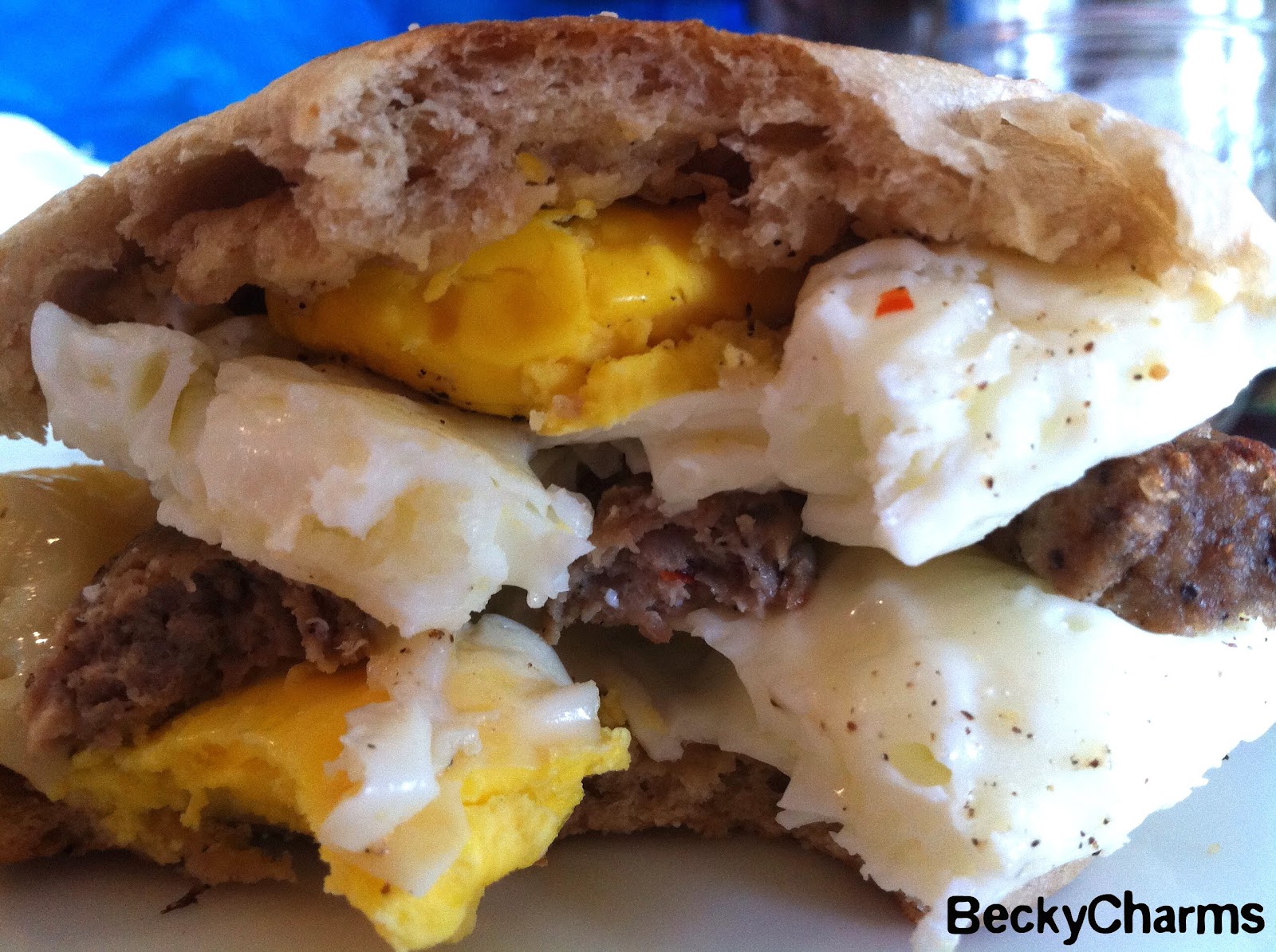 Sausage, egg, and cheese...but a much lighter version, is definitely a winner, winner in my book! I have always been a fan of the Sausage McMuffin with Egg breakfast sandwich at McDonald's, but knew that it wasn't good for my insides {health-wise}. This lighter version packs so much flavor and for only 9 WWpts+, you get 2 eggs on your sandwich! {This means that the sandwich is only 7 WWpts+ with one egg, just like the McD's version.}